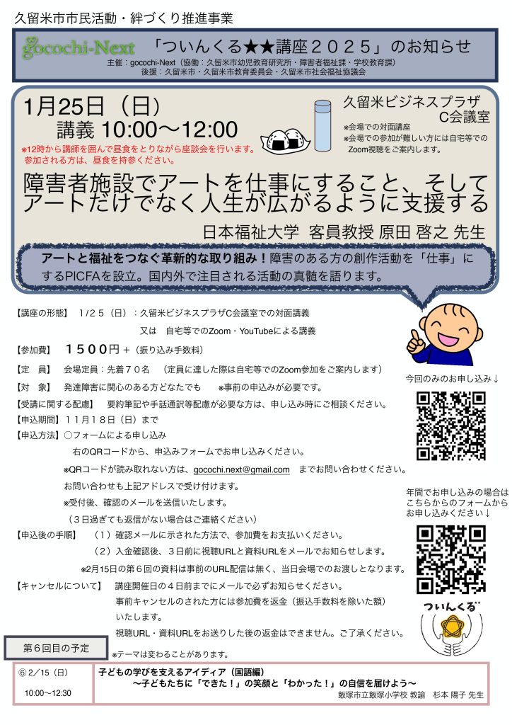 R7.1.25(日) 障害者施設でアートを仕事にすること、そして アートだけでなく人生が広がるように支援する