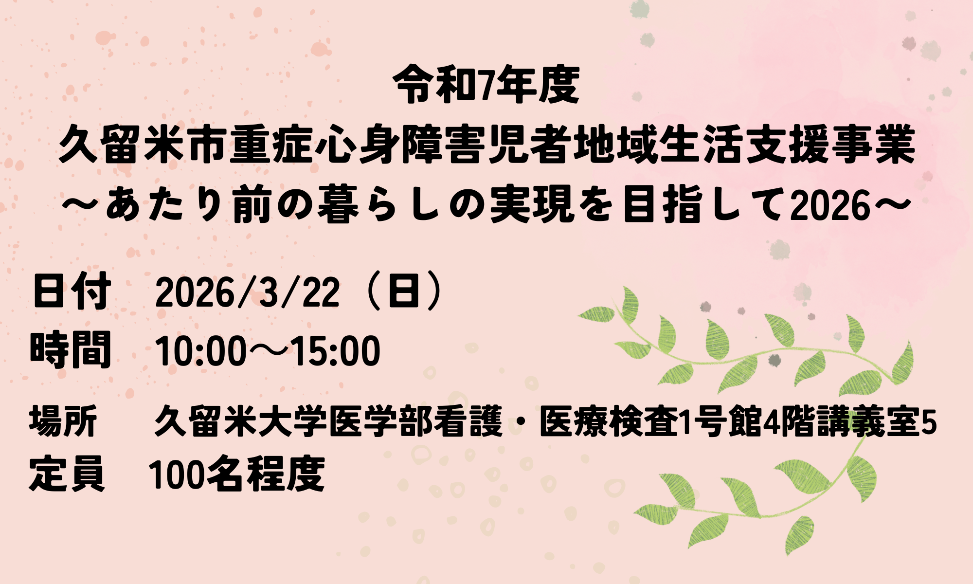 R8.03.22(日) 久留米市重症心身障害児者地域生活支援事業〜当たり前の暮らしの実現を目指して2026~